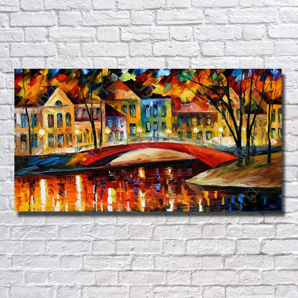 BRIDGE OF THE OLD VILLAGE - Palette Knife Oil Painting On Canvas By Leonid Afremov - 16"X40"